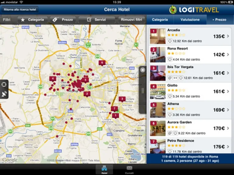 I risultati possono essere filtrati per prezzo, categoria e servizi. Inoltre, l’applicativo dà la possibilità di visualizzare le informazioni sulla struttura, con foto e commenti degli utenti che hanno già soggiornato. Consentendo il recupero dei dati personali, peraltro, si accorciano i tempi di ricerca ed attesa. Il processo di prenotazione è così facilitato e velocizzato. Grazie alla geo-localizzazione, poi, l’applicazione fornisce informazioni su come raggiungere l?hotel scelto grazie allo street view di Google.